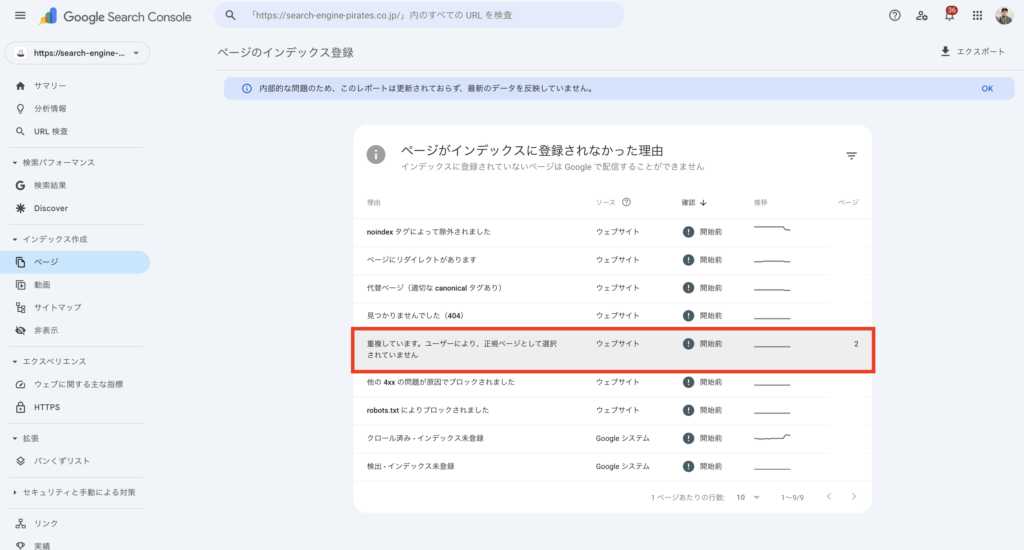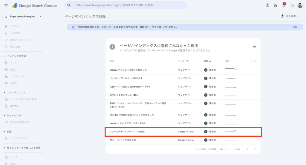 - サイン②|「クロール済み-インデックス未登録」が増加する