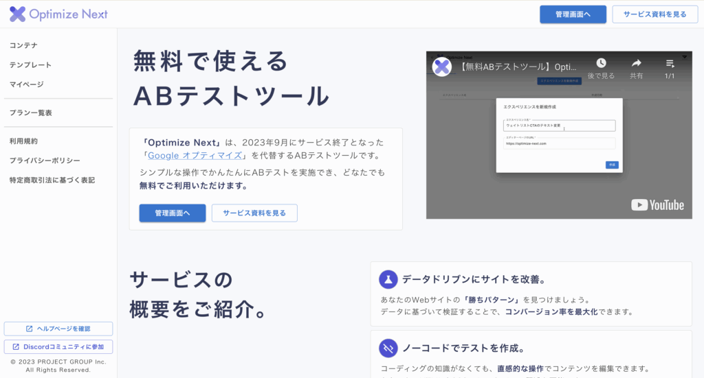 『OptimizeNEXT』は、CTAの文言や色、配置を柔軟にABテストできるツールです。複数パターンを同時に検証し、どのデザインや文言が最も成果に寄与するかを数値で可視化できます。