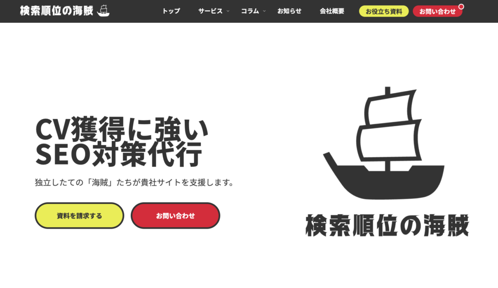 『株式会社検索順位の海賊』は、その名の通り検索順位の向上に特化した施策を提供するSEO会社です。 徹底的な競合調査と内部対策を組み合わせることで、低価格ながらも着実な順位上昇を目指せる点が大きな魅力と言えます。