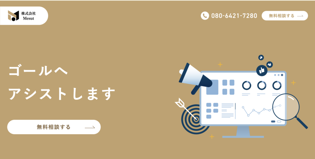 『株式会社Mesut』は、検索順位やPVといった中間指標にとらわれず、売上やリード獲得といった「KGI達成」にコミットするWebマーケティング集団です。
