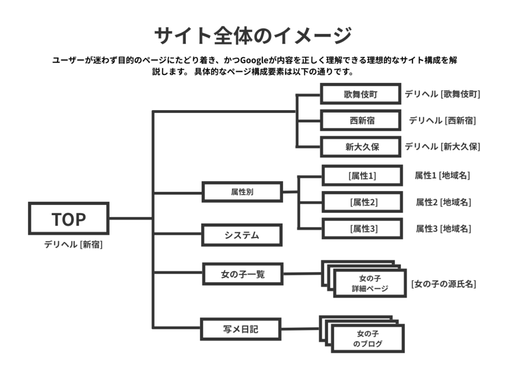 - 構成①|TOPページ(地域名+デリヘルでの順位付け)