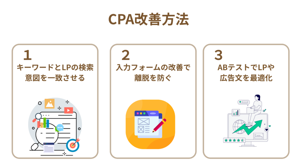 CVRが上がれば、同じ広告費でも獲得数が増え、CPAが自然と下がる構造になります。ここではCVRの改善を通じてCPAを効率的に下げる具体的な方法を紹介します。