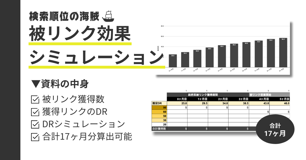 「被リンク効果(DR)シミュレーション」資料 2025.12.23 獲得したリンクの質と量から、ドメインパワー(=DR)のシミュレーションを構築するテンプレートです。 資料の中身 被リンク獲得数 獲得リンクのDR DRシミュレーション 合計17ヶ月分算出可能 必須お名前 必須メールアドレス 必須電話番号 必須会社名 ご入力頂いた個人情報は、「個人情報の取り扱いについて」の記載に基づいて適切に管理します。また、ご入力頂いたメールアドレス宛に、広告を含むご案内のメールをお送りする場合があります。 Δ