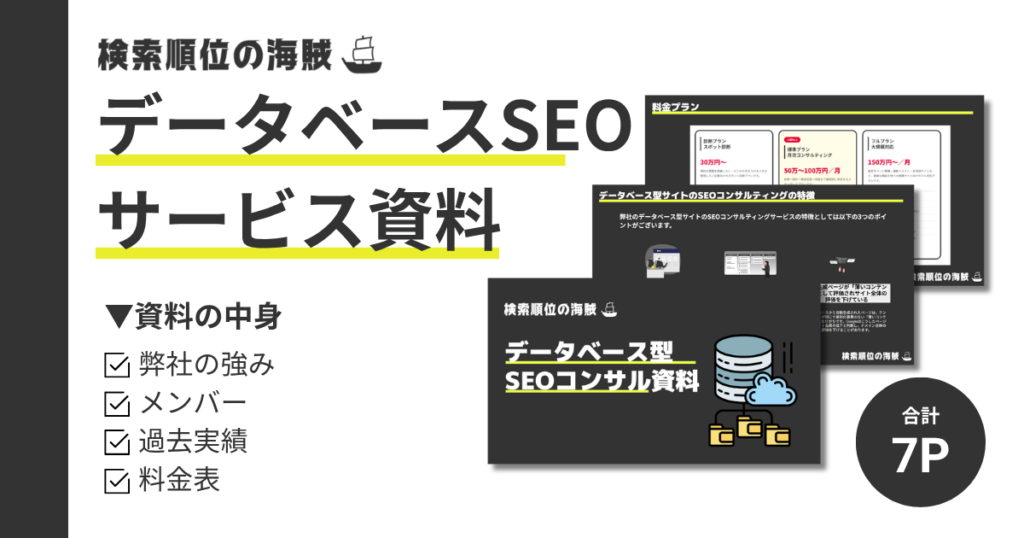 「データベース型サイトのSEOコンサルティングサービス」資料 2026.03.222026.04.05 弊社のサービスや特徴について詳細に説明した資料になります。相見積もりの際にご利用ください。 資料の中身 特徴 実績 利用すべき会社の特徴 利用の流れ