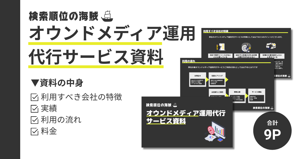 「オウンドメディア運用代行・コンサルティングサービス」資料 2025.11.23 弊社のサービスや特徴について詳細に説明した資料になります。相見積もりの際にご利用ください。 資料の中身 オウンドメディア運用代行の特徴 オウンドメディア代行の実績 利用の流れ 料金 必須お名前 必須メールアドレス 必須電話番号 必須会社名 ご入力頂いた個人情報は、「個人情報の取り扱いについて」の記載に基づいて適切に管理します。また、ご入力頂いたメールアドレス宛に、広告を含むご案内のメールをお送りする場合があります。 Δ